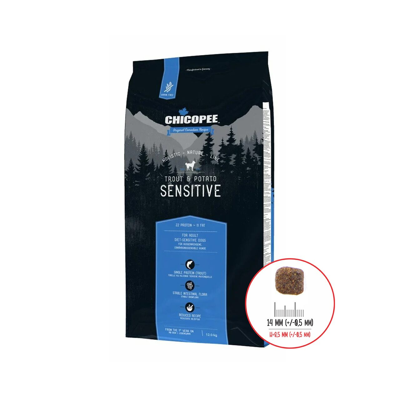 Chicopee HNL (Holistic Nature Line) Sensitive este o hrană super premium creată special pentru câinii cu sensibilități digestive sau intoleranțe alimentare. Această formulă holistică elimină complet cerealele care conțin gluten, folosind cartoful și orezul ca surse de carbohidrați ușor asimilabili. Este alegerea de top pentru proprietarii care observă reacții adverse la hrana obișnuită, oferind o dietă blândă care calmează tractul gastrointestinal și restabilește echilibrul metabolic.
