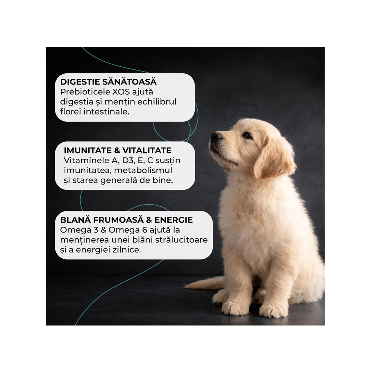 Sănătatea articulară este susținută proactiv prin includerea unor compuși esențiali care hrănesc cartilajele aflate în plină formare. În plus, profilul bogat în acizi grași Omega-3 (EPA și DHA) nu susține doar sănătatea pielii și strălucirea blănii, ci joacă un rol fundamental în dezvoltarea sistemului nervos central și a funcției vizuale. Un pui hrănit cu VIVO Super Premium va fi nu doar mai sănătos fizic, ci și mai receptiv la stimulii externi și la procesele de dresaj specifice vârstei.